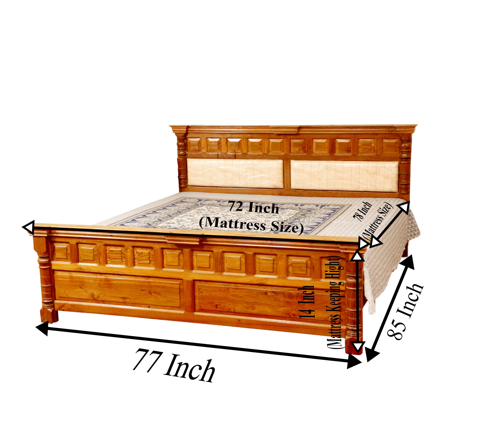 Solid Wood Bed in Light Brown Finish (Teak wood)
