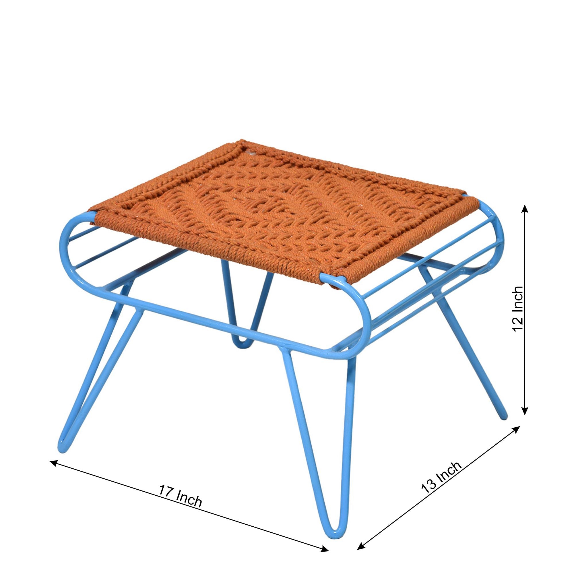 This stylish and trendy stool features a unique design with blue legs, adding a touch of retro charm to any space. It is crafted with high-quality materials for durability and long-lasting use. The versatile stool can be used as extra seating or as a decorative accent piece. The comfortable woven seat provides a cozy and inviting seating experience. Its compact size makes it perfect for small apartments or rooms with limited space.