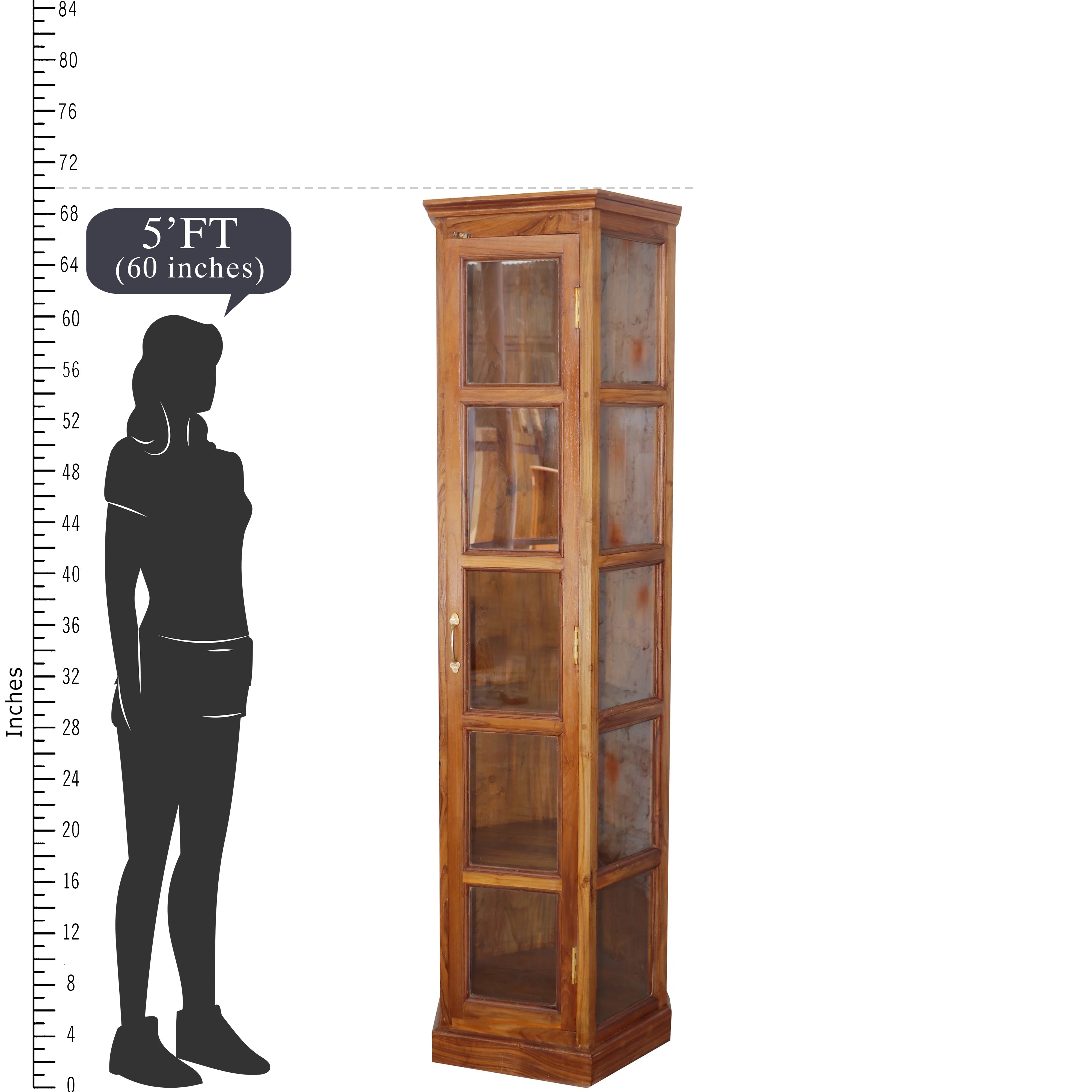 Compact long angled teak wood showcase