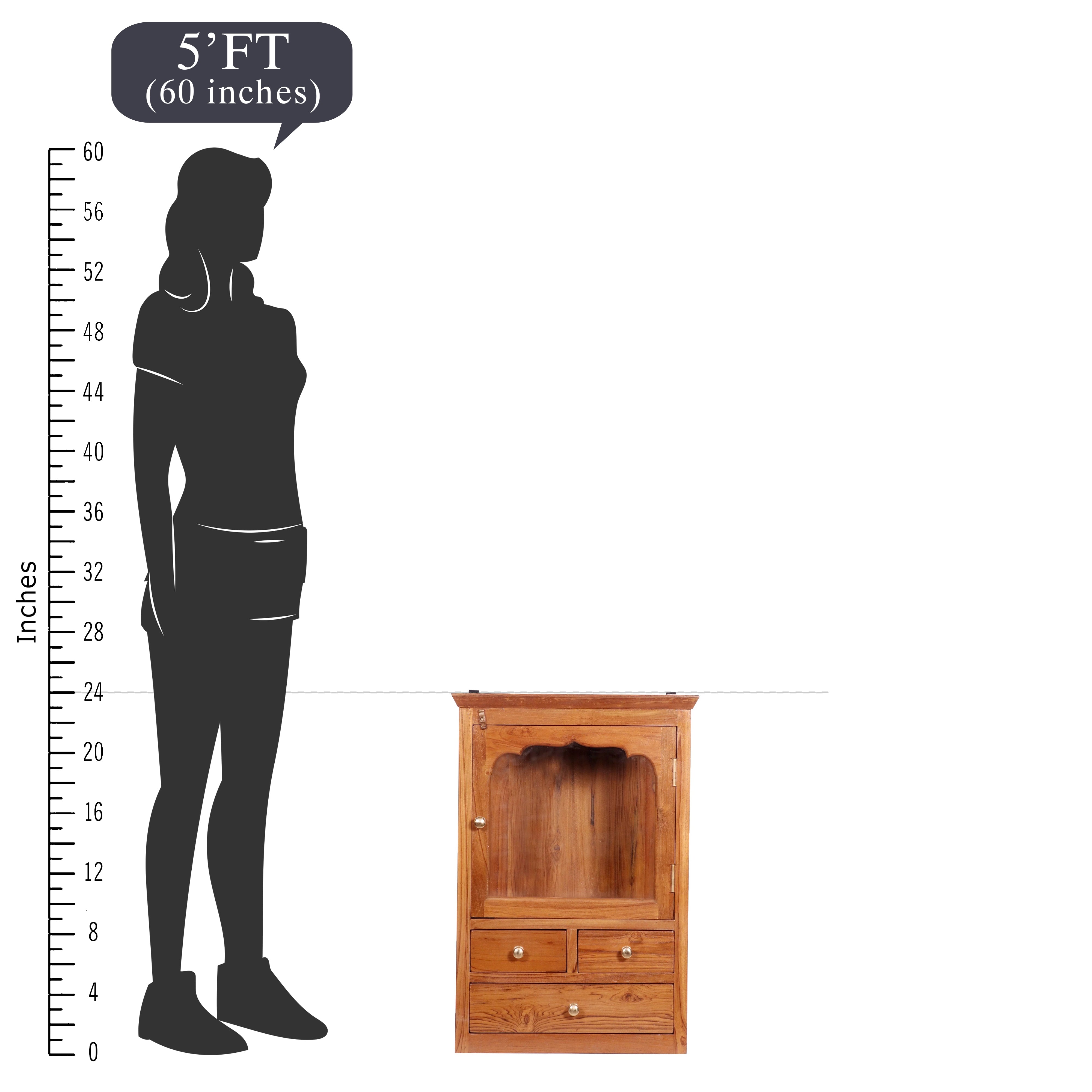 Wooden 3 Drawer 1 Glass Door Wall Cabinet