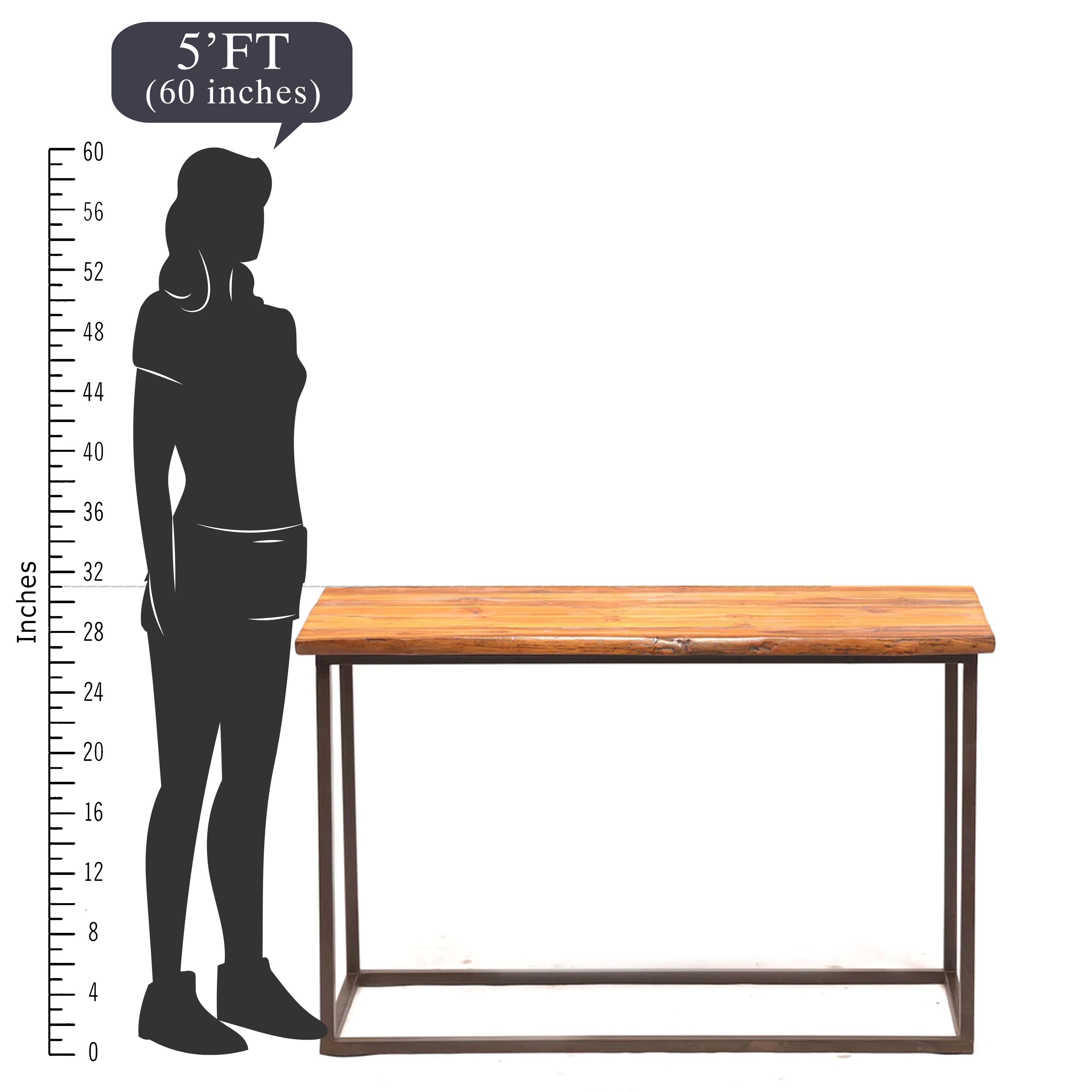 Heritage Finish Metallic Stand Solid wood Top Console Table