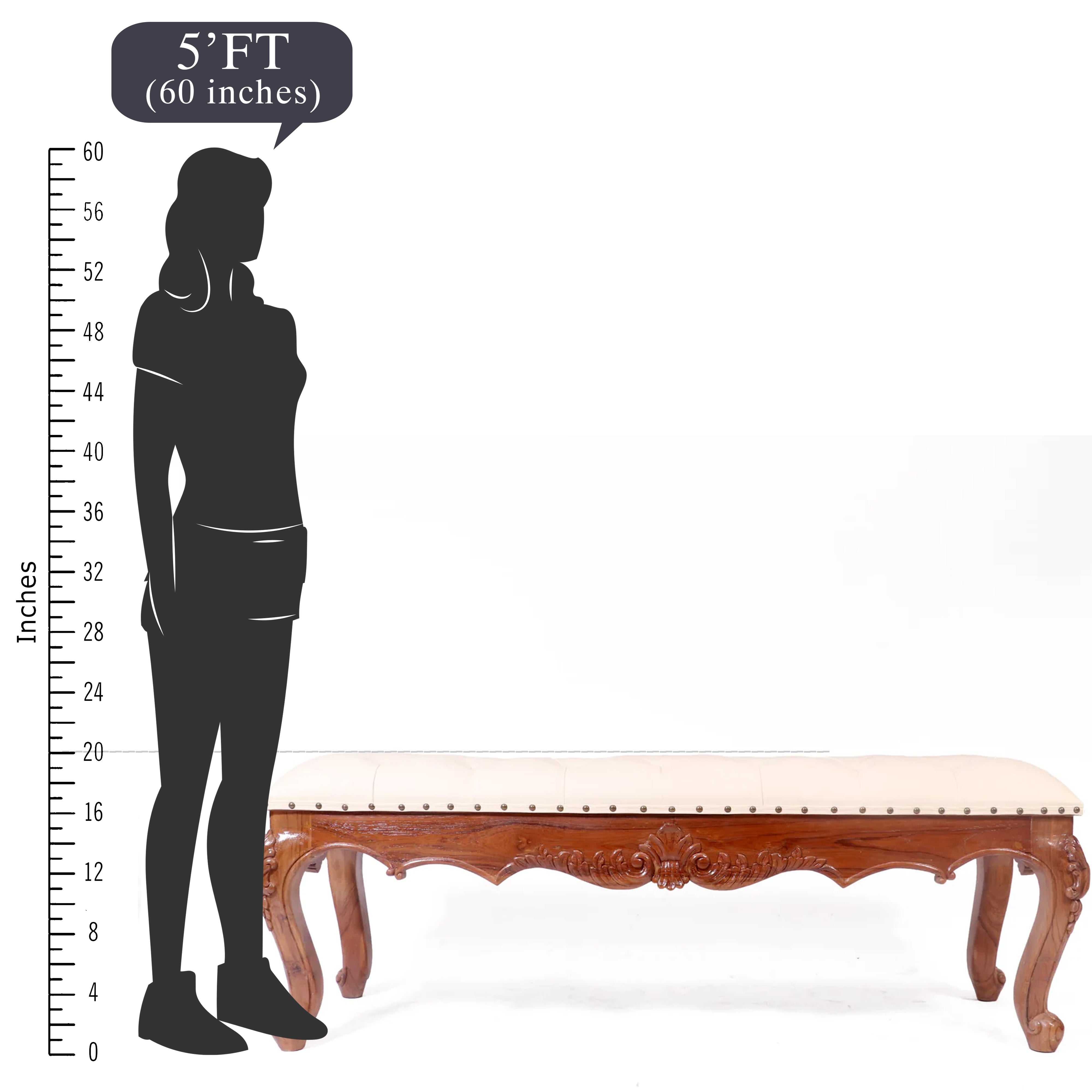 Solid Teak Royal Carved Bench with Cushion