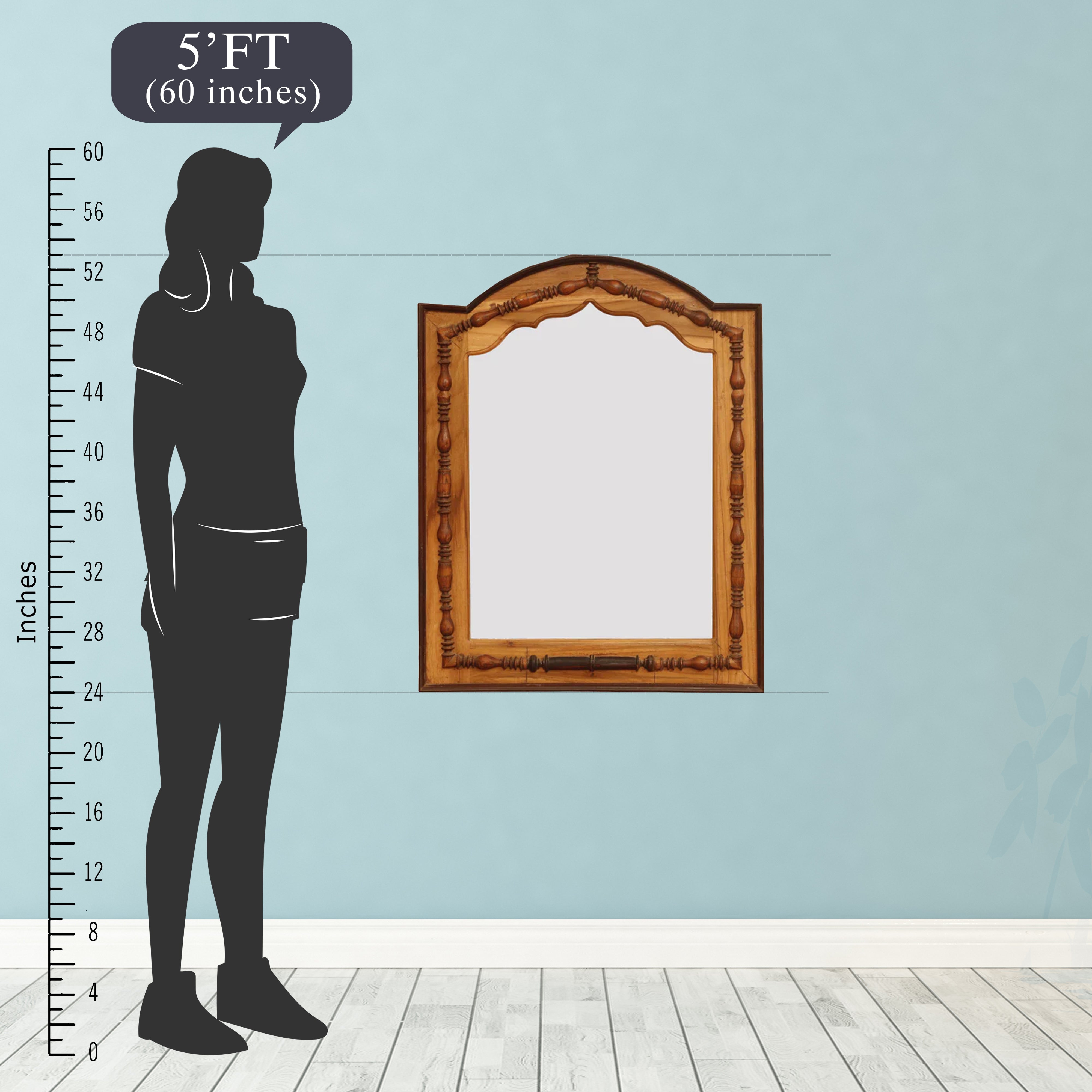 Our Jharokha Mirror Frame is a beautifully handcrafted piece with intricate details that adds elegance to any space. Its timeless design seamlessly fits into both traditional and contemporary decor styles. Made with high-quality wood and premium glass, this mirror frame is built to last. Its compact size allows for versatile placement options in any room, enhancing its aesthetic appeal. This unique statement piece serves as a stunning focal point in any interior setting.