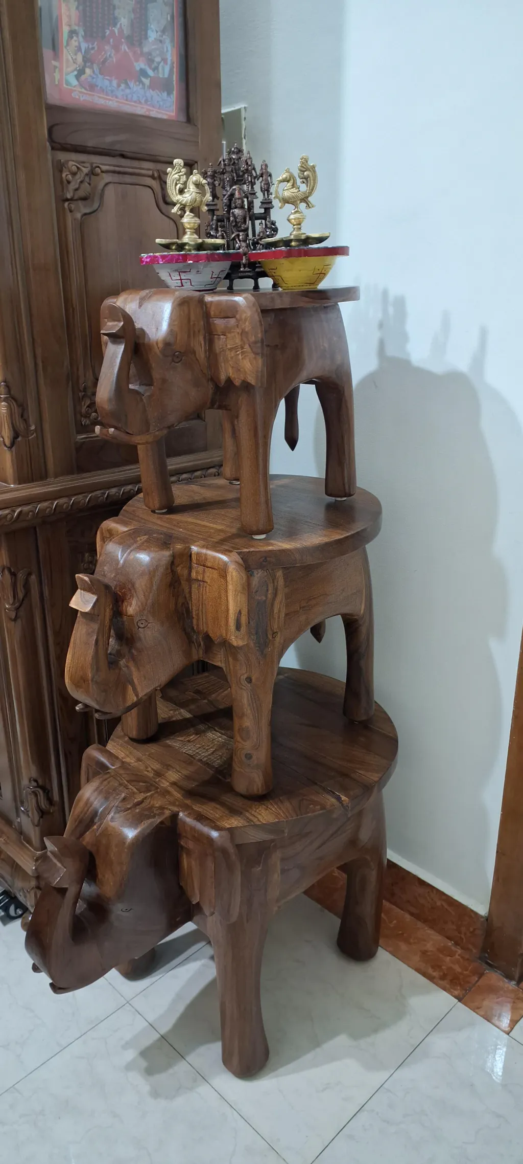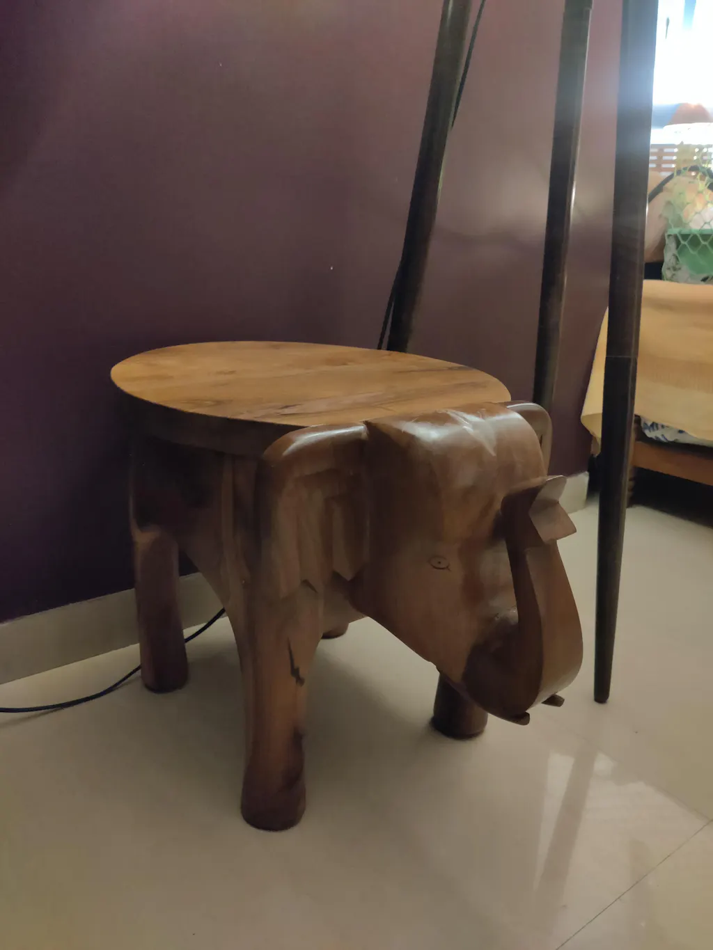 This handcrafted wooden piece offers a unique and elegant aesthetic. Its versatile design allows it to be used as a table stand or decorative item, adding a touch of sophistication to any space. With its sturdy construction, it guarantees durability and long-lasting use. This item is an ideal gift for elephant enthusiasts or anyone who appreciates artisanal craftsmanship.